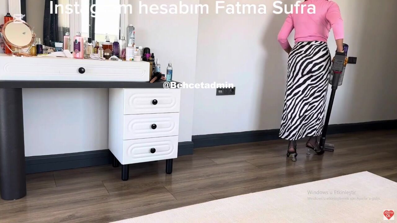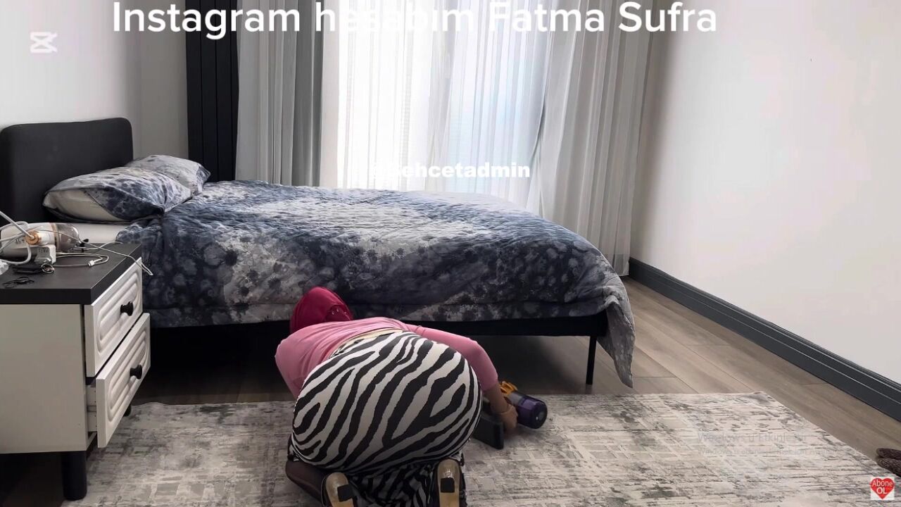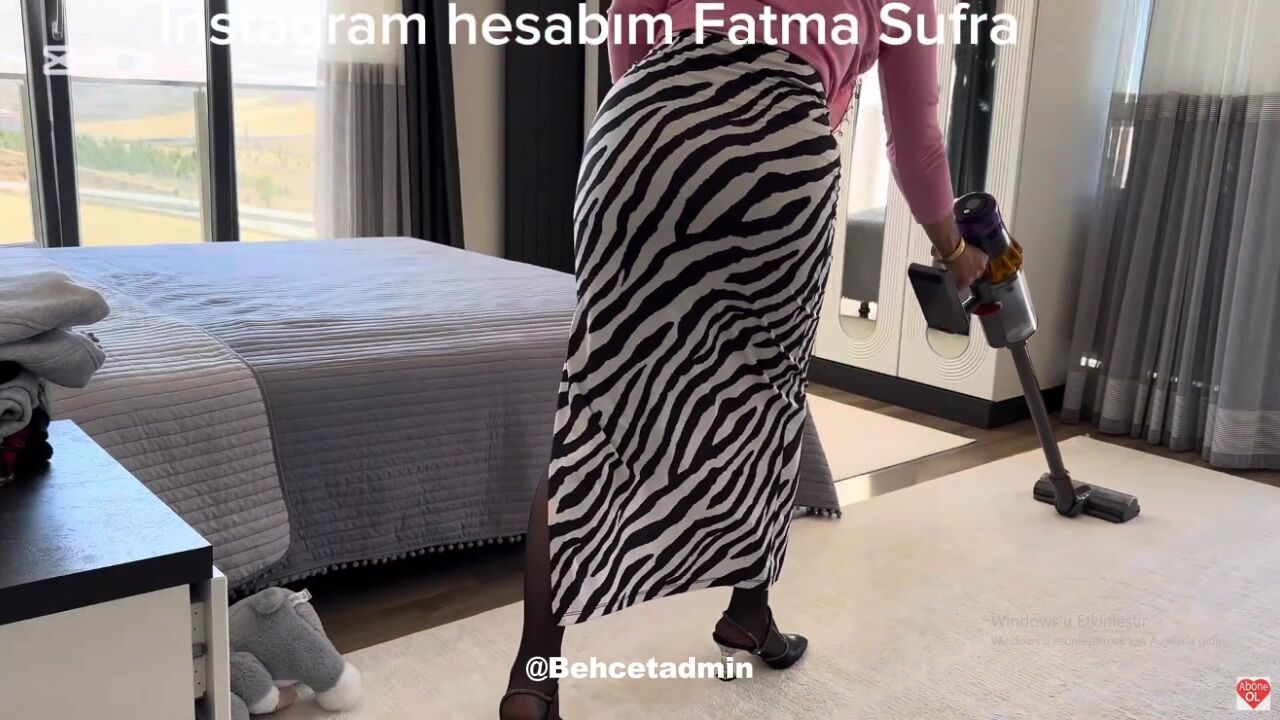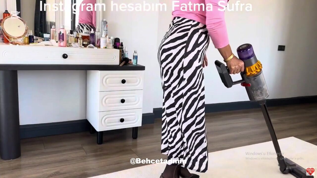 Fatma ile Her Telden: Zebra desenli dar eteğiyle domalarak evi temizledi