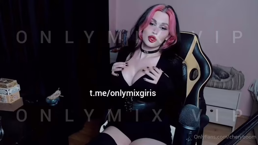 Pembe saçlı Cheryboom kamerada eteğini indirip kalçalarını ayırıyor, göğüslerini okşuyor.