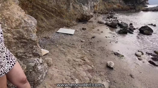 Letsnudeit taşlık alanda eteğini sıyırıp kalın götünü elliyor, adam sıkıyor.