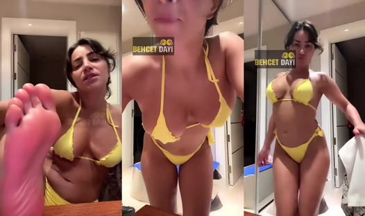 Serpil Cansız sarı bikinisiyle banyoda kıvırtıyor, götünü sallıyor